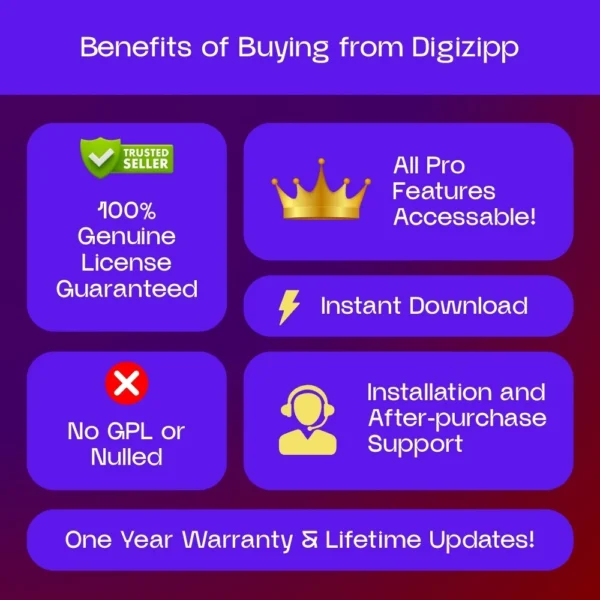 • No GPL or Nulled Versions: Ensure your website stays secure and updated with the official version.